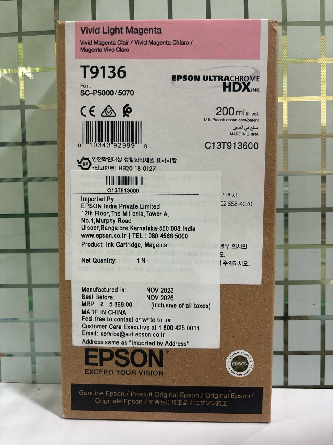 Epson SC-P5000 Ink Cartridge Vivid Light Magenta - 200ml C13T913600 Epson Ink Cartridge for SureColor SC-P5000: Vivid Light Magenta Cartridge - 200ml Reference C13T913600